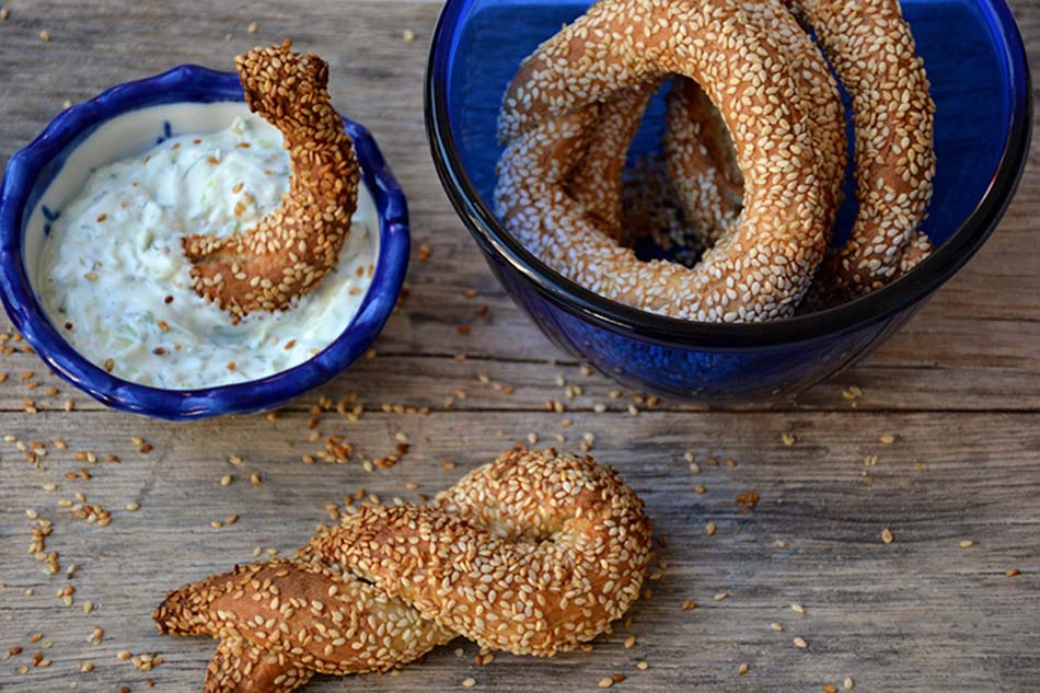 Koulouri is a Greek bread ring that’s similar to simit but thinner and crispier. It’s coated in sesame seeds and sold by street vendors as a breakfast snack or midday treat. Koulouri is commonly paired with coffee or tea and enjoyed plain or with a simple spread of cheese or jam.